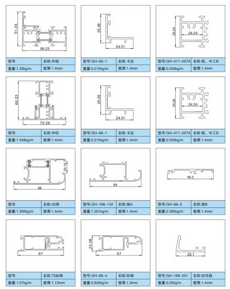 门料、防盗网、百叶窗、扶手料系列